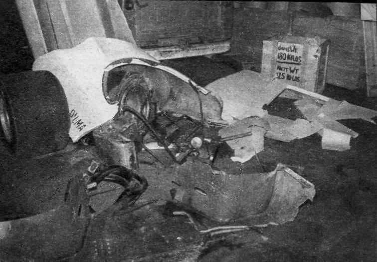 Entre las heridas leves, se anotaba el daño producido en el otro tanque de nafta, desviaciones en las suspensiones delanteras que deberían ser corregidas y una abolladura en la parte posterior del chassis.