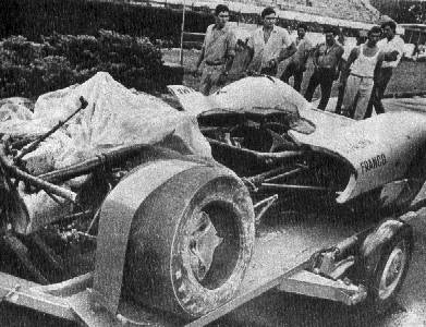 | Oreste Berta arrancó parte de la carrocería del auto, como si desgajara parte de su propio cuerpo y con ella fabricó una precaria camilla donde se depositó el cuerpo exánime del piloto. |