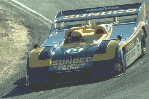 La cara de la CanAm cambió con la introducción del nuevo Porsche 917/10 K que venía equipado con motor plano de 12 válvulas, cinco litros y turbo cargador gemelo. Contaban con el apoyo de la fábrica, patrocinados por L&M. Roger Penske preparó los 917/10 K para Mark Donohue y George Follmer, y ganó seis de las nueve carreras. Donohue perdió cuatro carreras por las heridas que tuvo en una práctica, así que Follmer entró como conductor sustituto. Después de que Donohue regresó, Penske introdujo los dos autos a las competencias. Follmer acumuló el número máximo de puntos para Porsche en cinco de las seis carreras ganadas por la marca y fue recompensado con el campeonato. Muchos otros pilotos corrieron con 917 PA o 917/10, pero fuera del equipo Penske y sin su configuración. No contento Porsche con el 5 litros plano de 12 válvulas, se decidió por un motor plano de aspiración normal, 7.2 litros y 16 válvulas. Se probó mucho, pero nunca corrió. Ni siquiera tenía necesidad correrlos, ya que los turbo cargados mostraban 1000 hp en el laboratorio y 900 hp en la pista. El cuerpo del 917/10 K era inclinado a los lados con un ala montada al final de la carrocería. Esta era convexa en la punta (en vez de la forma cóncava tradicional), entre las ruedas delanteras, para ayudar a producir un buen downforce. |