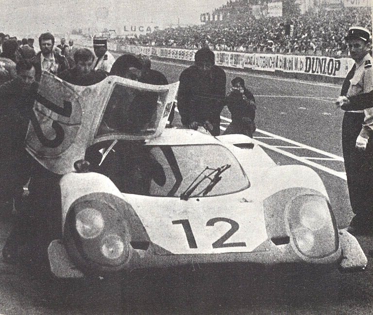 Vic Elford ganó la clasificación con un 917. En carrera, luego de una primera vuelta con una gran ventaja a favor de Rolf Stommelen y su 917, el joven piloto logró mantenerse en la vanguardia durante algunas horas, pero al cabo de éste tiempo el embrague de su auto quedó destrozado en razón del esfuerzo. El 917 de Vic Elford aguantó 20 horas – según Steinemann, por una conducción más cuidadosa – pero tampoco soportó la fatiga. Cuando el embrague se desmontó, se descubrió que además la caja de velocidades estaba fisurada.
