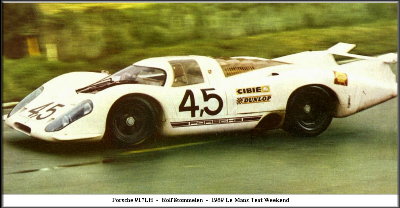 PORSCHE Y LA ETERNA META: LAS 24 HORAS DE LE MANS Es innegable que por aquellos años las 24 Horas de Le Mans era la competencia más importante del calendario y en la que todos querían inscribir su nombre. Ganar Le Mans significaba darle un sentido a la participación en el campeonato, y ese solo triunfo "salvaba" el año. Puede incluso decirse que las siete competencias anteriores a Le Mans en el año, eran consideradas como banco de pruebas para lograr el éxito en las 24 horas francesas. Puede verse una breve historia de las actuaciones de Porsche en las 24 Horas de Le Mans, desde 1951 en adelante, en la página |