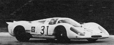 Stommelen-Ahrens con el 917 #14 del Equipo Oficial Porsche. Abandonaron en la vuelta 148 por pérdida de aceite. |