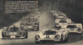 Pero en 1971, éstos "monstruos" de 5 litros también dejarán la escena. Sin embargo, no hubo quejas ésta vez. El cambio fué anunciado con la suficiente antelación como para que todos planearan con tiempo sus pasos futuros. Claro que , como siempre, alguien desaparecerá de la lucha y ese alguien será tal vez Porsche. Por el momento, el éxito que acompañará a los campeonatos venideros es una incógnita. No obstante, se presume que la limitación en la cilindrada máxima de los vehículos participantes a tres litros permitirá que un mayor número de marcas se coloquen en condiciones más parejas, brindando mejores espectáculos. Los próximos 1000 km. de Buenos Aires tendrán la primera palabra al respecto; aunque difícilmente para esa carrera puedan verse en acción a todos los autos que animarán el torneo. Una cosa sí ya está decidida y es que los poderosos exponentes de gran cilindrada desaparecerán definitivamente del panorama internacional. El adiós a los "monstruos" esta vez es definitivo.